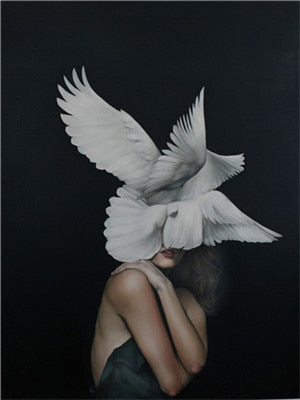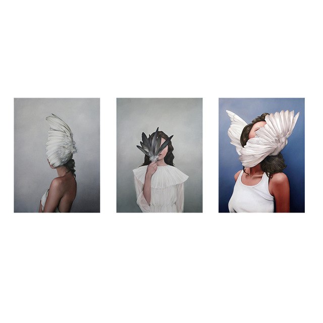 picture cuadros decorative Unframed : Posters and Prints Flowers with feather Women Oil Painting decoration